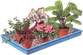 При содержании в помещении с центральным отоплением растений, нуждающихся в высокой влажности воздуха, полезно размещать их на низком поддоне, в который насыпан слой гальки. Если у вас возникают трудности с выращиванием узамбарских фиалок, попробуйте поместить их на поддон с галькой. Поддон может быть сделан из любого водонепроницаемого материала. Глубина поддона около 5 см, длина и ширина могут быть любые, но не ставьте слишком широкий поддон на узкий подоконник, иначе он опрокинется. Насыпьте на дно поддона слой мелкой гальки толщиной в 2-2.5 см и налейте столько воды, чтобы нижние камешки были мокрыми. Вода не должна покрывать камешки целиком. Сверху на камни поставьте горшки с растениями. Лучшим местом для поддона с галькой является полка над батареей центрального отопления. При таком размещении влажность воздуха вокруг растений увеличивается во много раз. Поливать растения очень легко - избыток воды будет выливаться из горшков прямо на поддон.