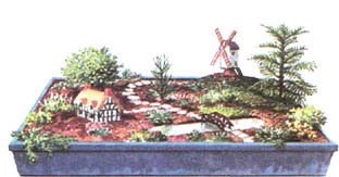 Это один из простейших видов комнатного сада, для создания которого несколько декоративнолистных и одно-два цветущих растений вынимают из горшков и пересаживают в торфяную почву. Традиционно в таком садике вертикальнорастущее растение помещают в задней части миски, несколько компактных кустистых растений - в средней части, и вьющееся растение - впереди. В качестве контейнера обычно используют миску для выгонки луковичных, но подойдет и любая другая водонепроницаемая миска. Такая миска - желанный подарок, но ее нельзя считать долговременным комнатным садиком. Когда цветы отцветут, лучше всего нарушить композицию и пересадить растения в отдельные горшки, прежде чем их корни безнадежно переплетутся. Объясните подарившему вам эту композицию, что вы не разрушаете его подарок - вы его спасаете.